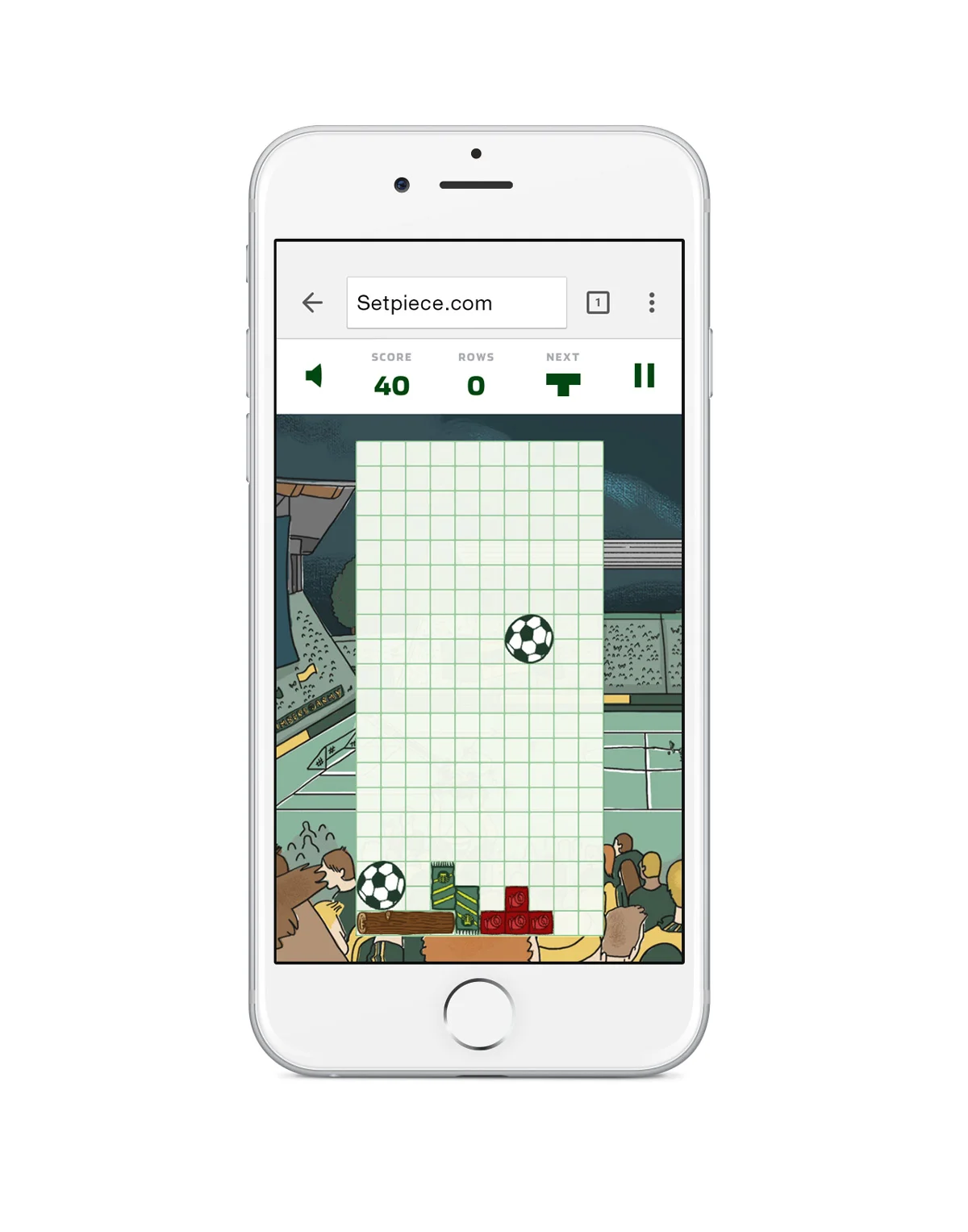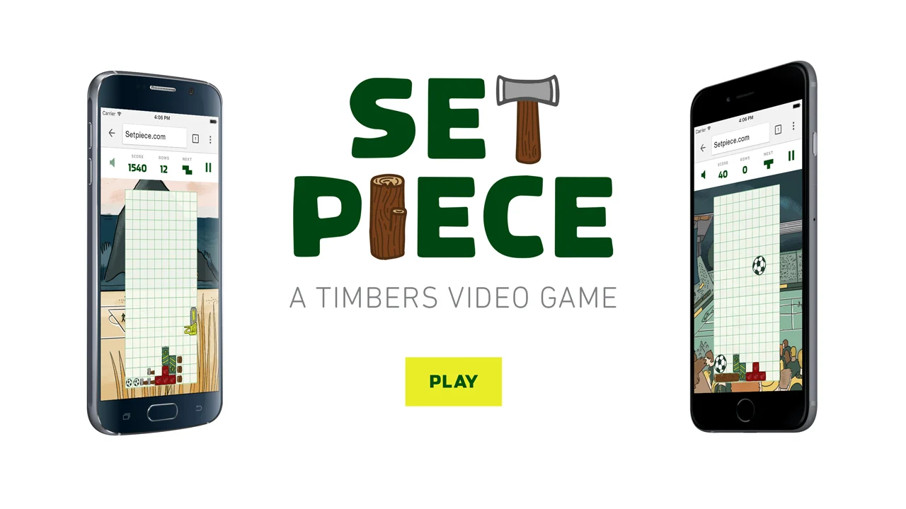 Set piece is a Timbers video game designed to keep the team top of mind in between matches. Inspired by the post match celebrations of the Timbers Army, Set Piece salutes the supporters as they dance to the trumpeted tune of Korobeiniki and three points.